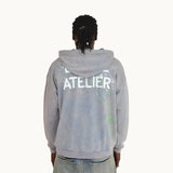 BLUE STEEL VINTAGE PAINT SPLATTER LARME ATELIER HOODIE
