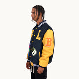 Wool Cowhide Varsity Jacket, a striking fusion of classic style and modern flair.