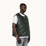 OLIVE GREEN LAMBSKIN SLEEVELESS PUFFER BY LARME ATELIER
