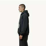 Destroyed vintage effect oversized hoodie crafted from premium heavyweight cotton fleece. Elevated streetwear essential by LARME ATELIER.
