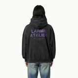 Constructed from heavyweight premium french terry cotton,  the oversized silhouette provides a relaxed drape with a structured feel. Each piece features subtle destroyed detailing and faded tones, giving every hoodie a unique, .One of a kind vintage hoodie Finished with signature LARME ATELIER branding , this hoodie is built for everyday wear, layering, and statement styling.